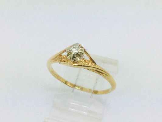 14k Yellow Gold Round Cut 0.07ct Diamond Illusion Set Ring