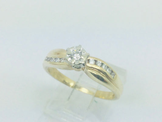 10k Yellow Gold Round Cut 0.16ct Diamond Illusion and Channel Set Ring