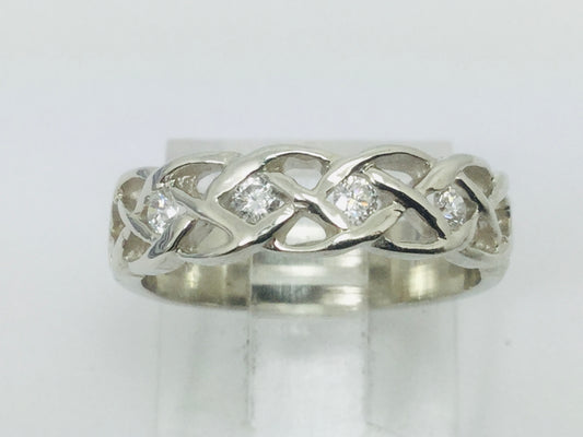 14k White Gold Round Cut 14pt Diamond Celtic Design Band Ring