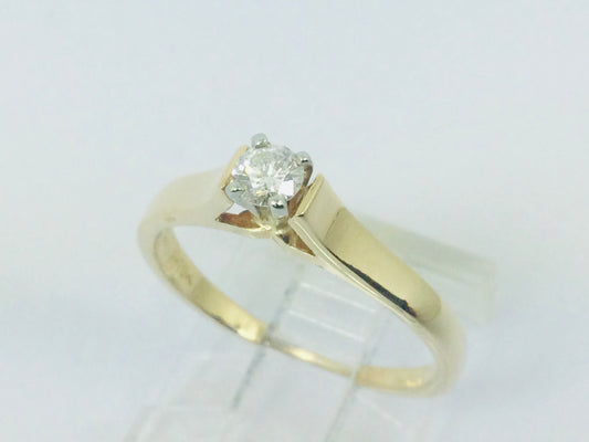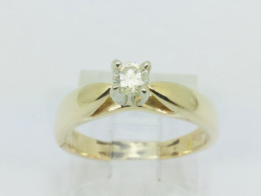 10k Yellow and White Gold Round Cut 17pt Diamond Solitaire Ring