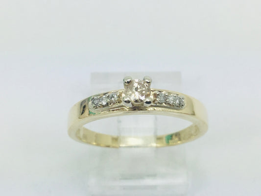 10k Yellow Gold Round Cut 7.5pt Diamond Solitaire with Accents Ring