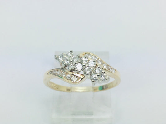 14k Yellow & White Gold Round Cut 0.54ct Diamond Cluster Ring