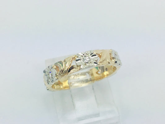 14k Yellow Gold Orange Blossom 15pt Diamond Flower Band Ring