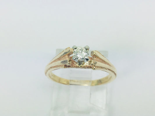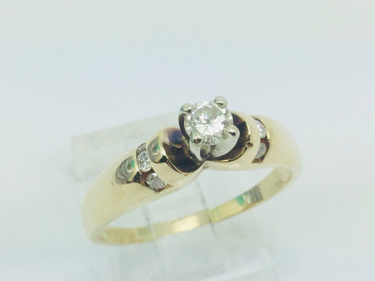 14k Yellow & White Gold Round Cut 12pt Diamond Ring