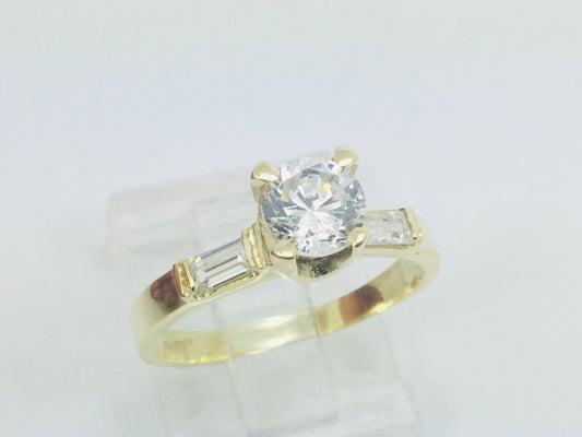 14k Yellow Gold Cubic Zirconia (CZ) Solitaire with Accents Ring
