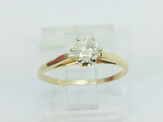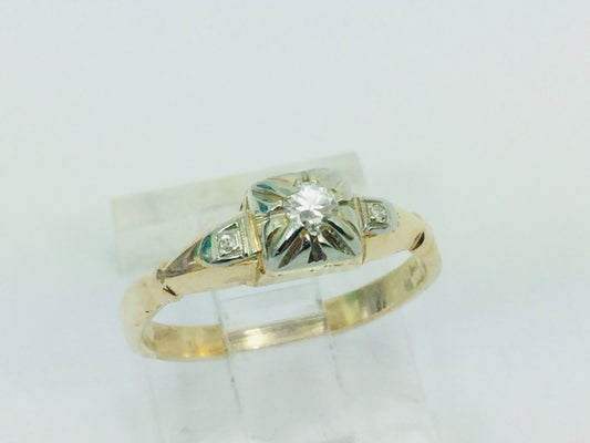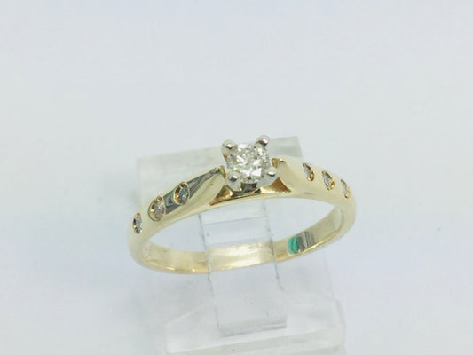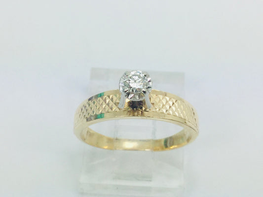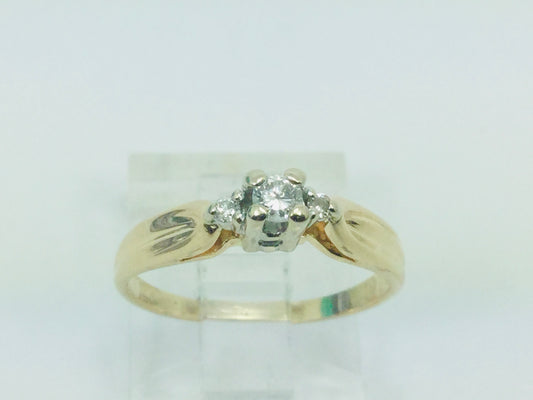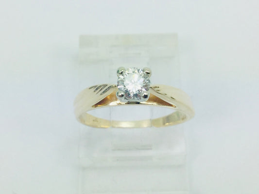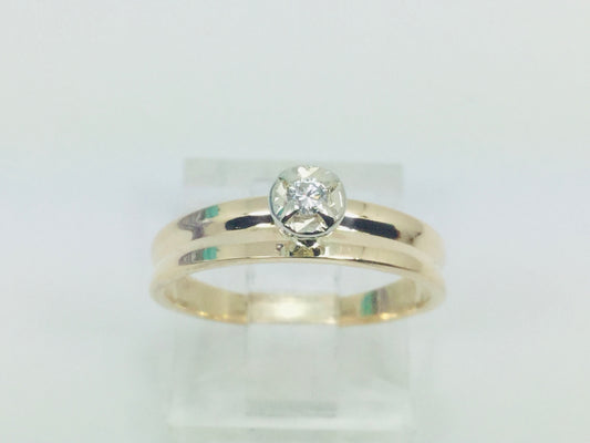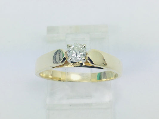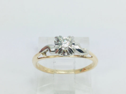 14k Yellow & White Gold Round Cut 0.15ct Diamond Solitaire Ring