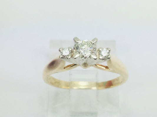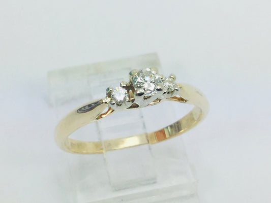 14k Yellow Gold Round Cut 20pt Trinity Three Stone Diamond Ring