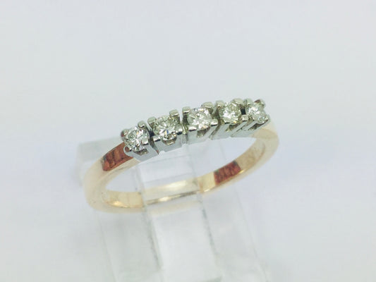 14k Yellow & White Gold Round Cut 15pt Row Set Diamond Ring