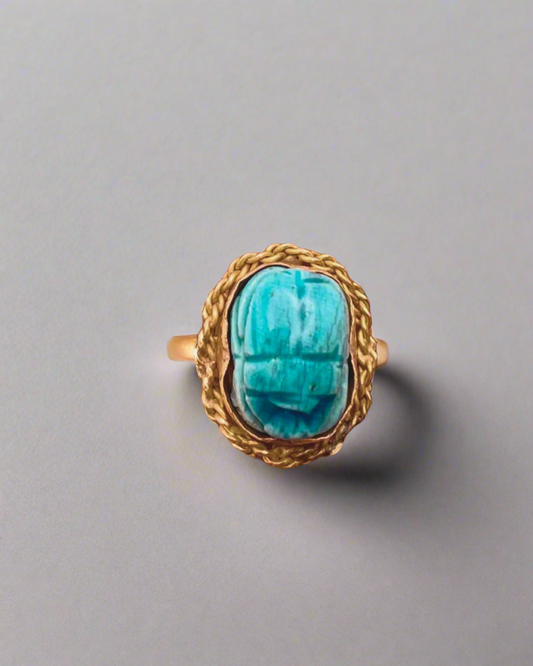 14k Gold Genuine Turquoise Egyptian Scarab Ring