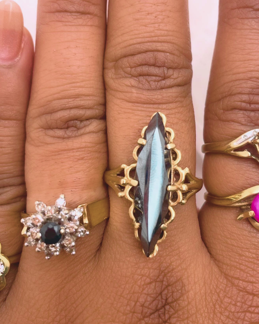 10k Gold Marquee Cut Hemitite “Black Alaskan Diamond” Ring