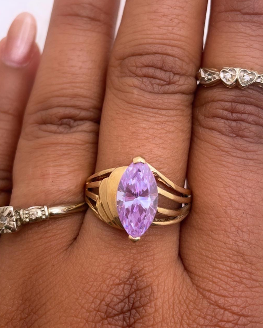 10k Yellow Gold Marquee Cut Amethyst Ring