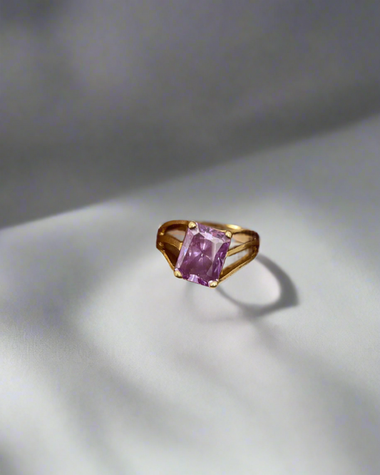 10k Yellow Golf Rectangular Cut Amethyst Ring