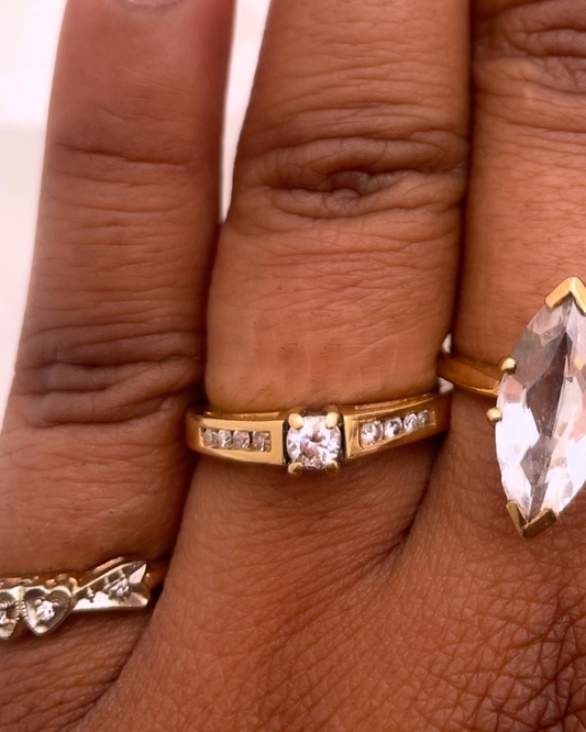 14k Yellow Gold 25pt Diamond w/ Channel set Diamond Accents Ring