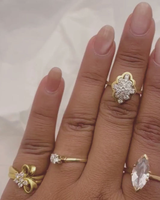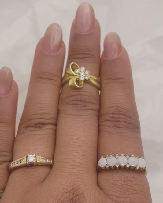 18k Yellow Gold 25pt Bow and Ribbon Diamond Cluster Ring