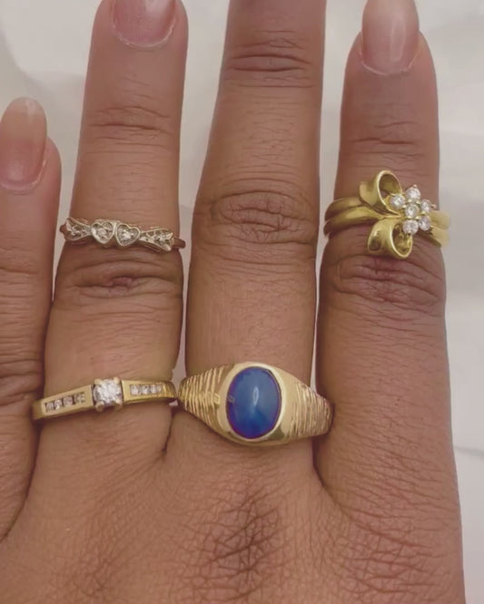 14k Yellow Gold Heart & Ribbons Diamond Ring