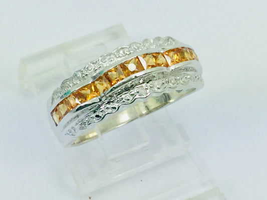 14k White Gold Citrine November Birthstone & Diamond Ring