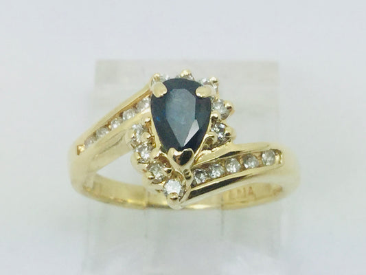 10k Yellow Gold Pear Cut 50pt Sapphire September Birthstone & Diamond Ring