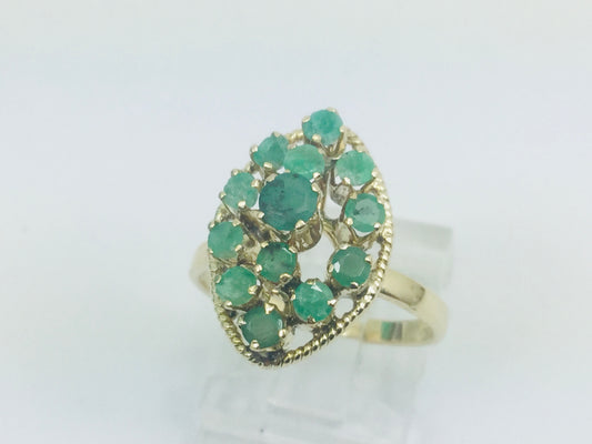 14k Yellow Gold Round Cut 90pt Emerald May Birthstone Oval Cluster Ring