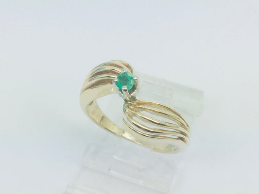 14k Yellow Gold Round Cut 10pt Emerald May Birthstone Ring