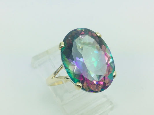 14k Yellow Gold Oval Cut Rainbow Topaz Cocktail Ring