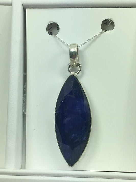 Geunine Lapis Lazuri Oval Gemstone On Silver Chain