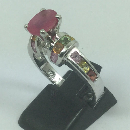 Silver Rose Gold Plated Cubic Zirconia & Rose Quartz Ring