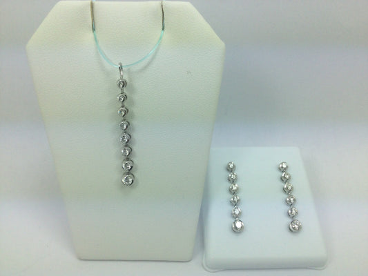 18k White Gold Round Cut 1.23ct Diamond Pendent and Dangle Earring Set