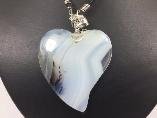 Pretty Genuine Gemstone Heart Shape Agate On Leather Cord Silver Lobster Claw
