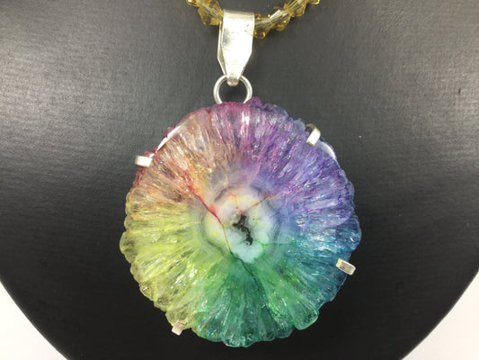 Beautiful Silver Quartz Crystal ( Stone Of Power ) On A Beaded Necklace