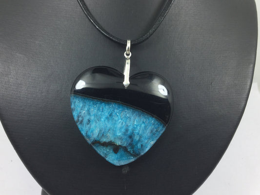 Stunning Genuine Gemstone Heart Shaped Druzy Agate On Leather Cord With Silver Lobster Claw