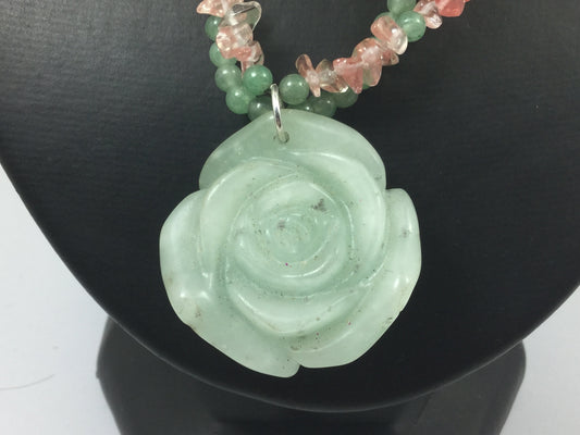 Adjustable Silver Jade (Dream Stone )And Rose Quartz (Stone Of Gentle Love )Necklace Double Strand