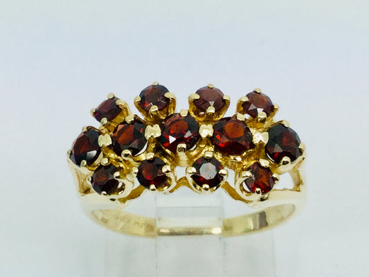 14k Yellow Gold Round Cut Garnet January Birthstone Cluster Ring