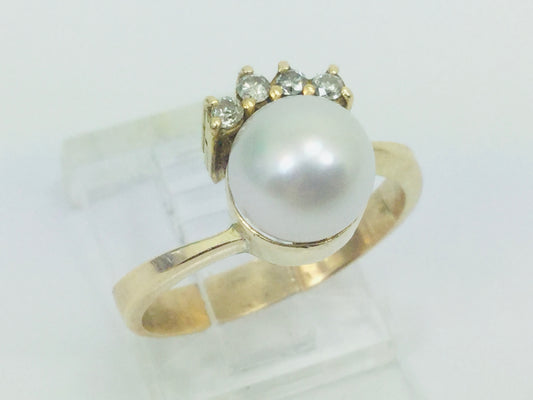 14k Yellow Gold Genuine Pearl June Birthstone & Diamond Ring