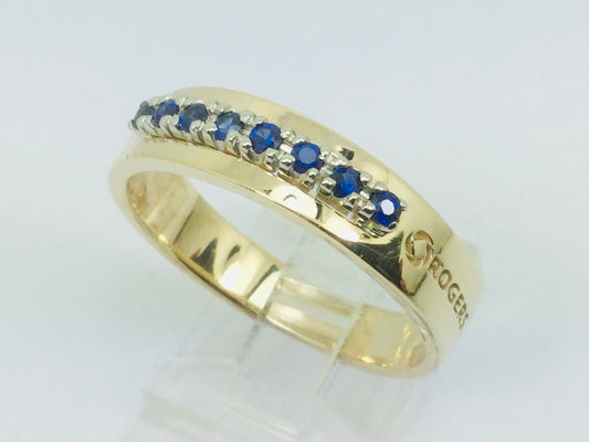14k Yellow Gold Round Cut 0.20ct Sapphire September Birthstone Row Set Rogers Ring