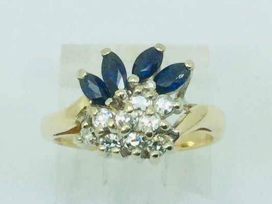 14k Yellow Gold Marquise Cut 40pt Sapphire September Birthstone & 18pt Diamond Cluster Ring