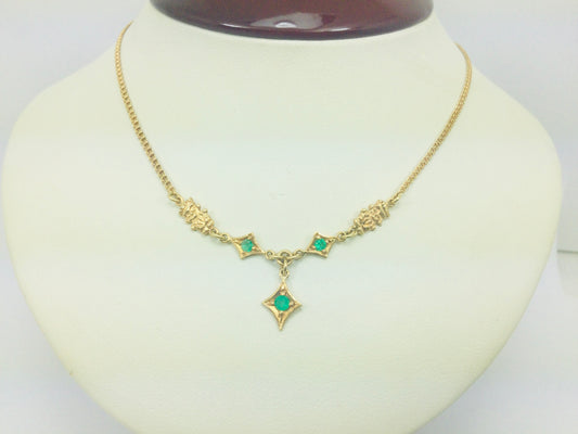 18k Yellow Egyptian Gold Round Cut 14pt Emerald Chain