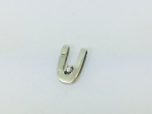 14k White Gold Round Cut 2.5pt Diamond Initial 'U' Horseshoe Pendent