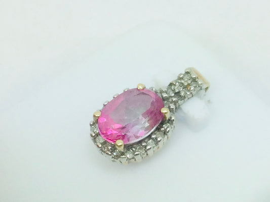 10k Yellow Gold Oval Cut 1.5ct Rose Quartz & 12pt Diamond Halo Pendent