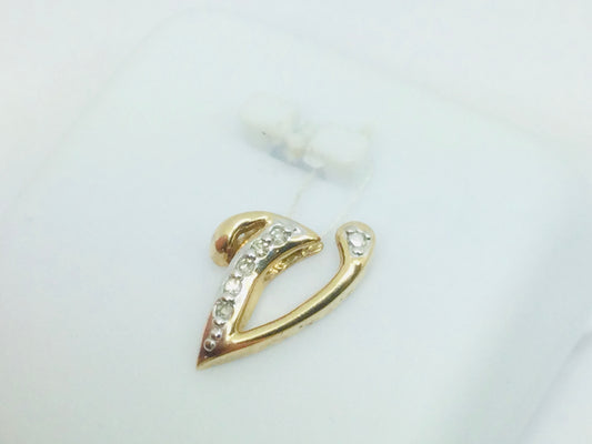 10k Yellow Gold Round Cut 6pt Diamond Initial 'V' Pendent
