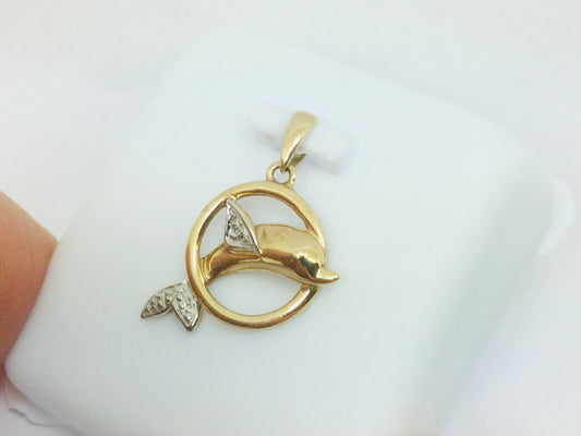 10k Yellow Gold Round Cut 2pt Diamond Dolphin Pendent