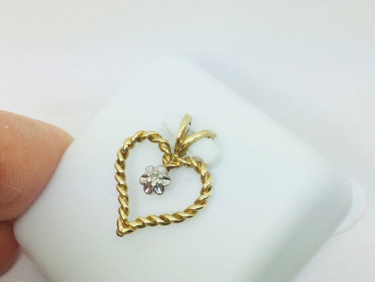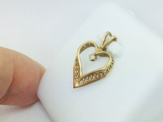10k Yellow Gold Round Cut 1.5pt Diamond Heart Pendent