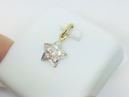 18k White and Yellow Gold Round Cut 9pt Diamond Star Pendent