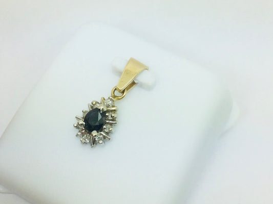 14k Yellow Gold Pear Cut 30pt Sapphire & 12pt Diamond Pendent