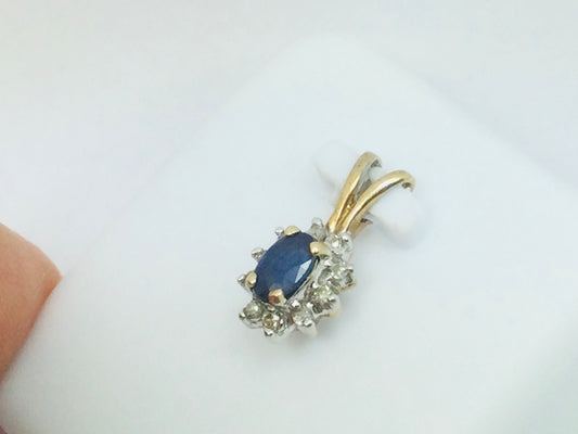 10k Yellow Gold Oval Cut 25pt Sapphire & 10pt Diamond Halo Pendent