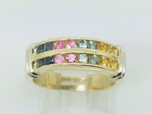 14k Yellow Gold Multi Color Blue Pink Yellow Aqua Topaz Ring