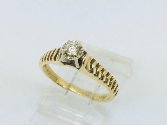 14k Yellow Gold Round Cut 0.07ct Diamond Illusion Set Ring