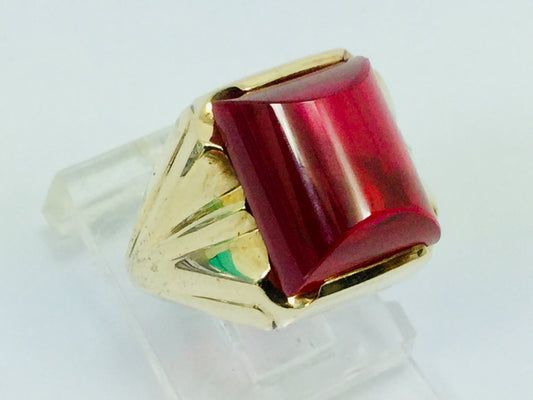10k Yellow Gold Round Cut 11pt Ruby, 22pt Sapphire and 36pt Diamond Vintage Ring
