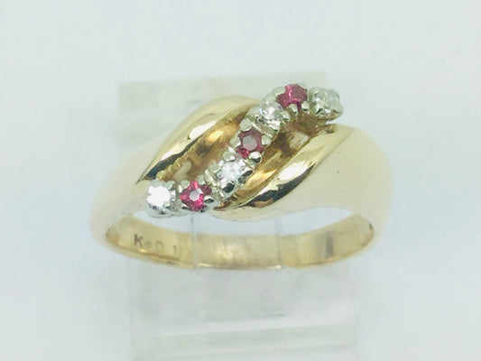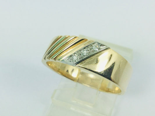 14k Yellow & White Gold Round Cut 0.09ct Diamond Row Set Ring