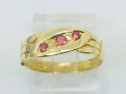 18k Yellow Gold Round Cut 10pt Ruby July Birthstone & 2pt Diamond Row Set Ring