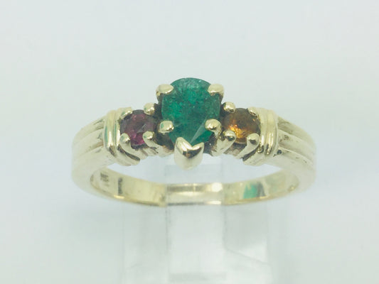 10k Yellow Gold Pear Cut Emerald May Birthstone, Citrine and Garnet Ring